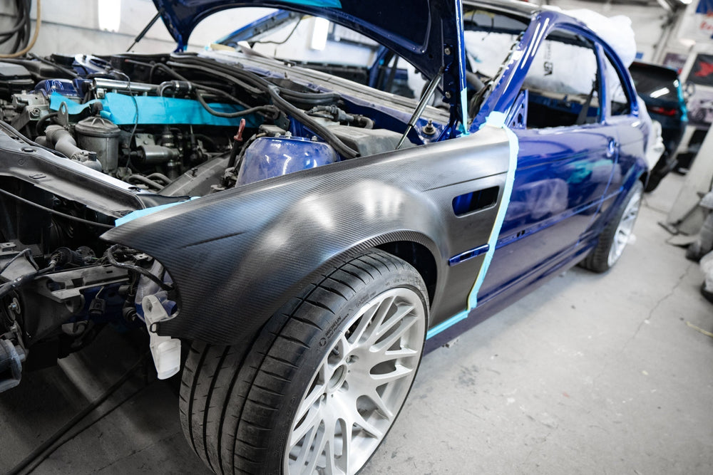 I reached out to Albert who previously ordered the V2 fenders. He is currently building a no holds barred S85 E46 M3 out West. He offered to ship the fenders as his build wasn't yet ready for paint. With many thanks to Albert, the fenders showed up the day after Labor Day weekend. We could hit the final stretch of the Phoenix's restoration.