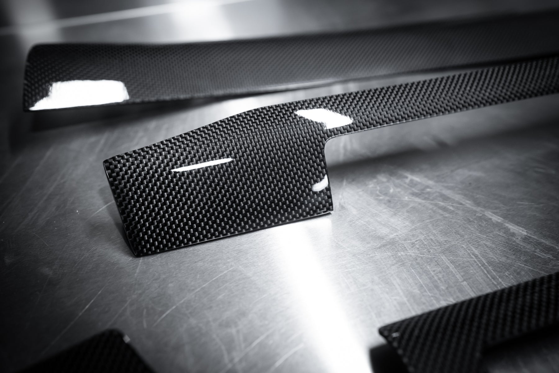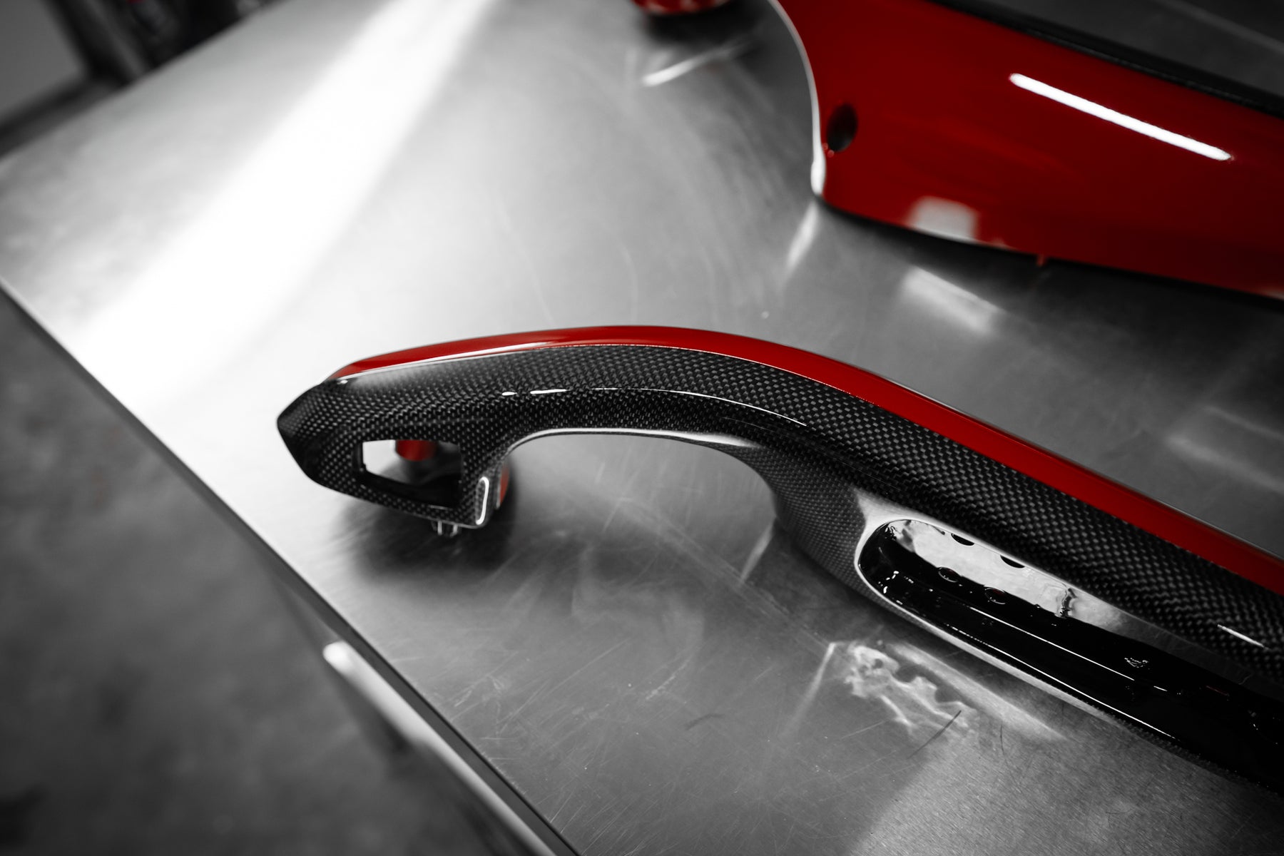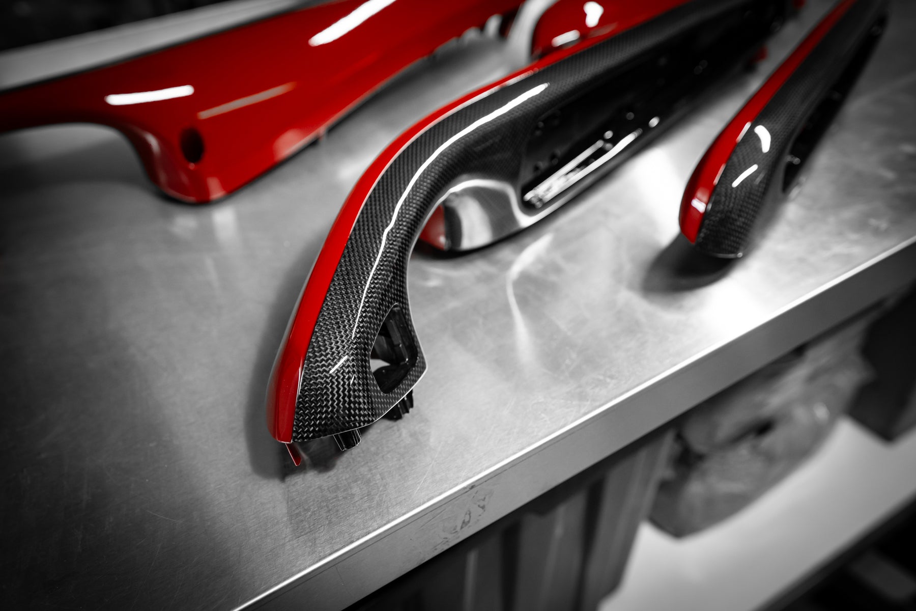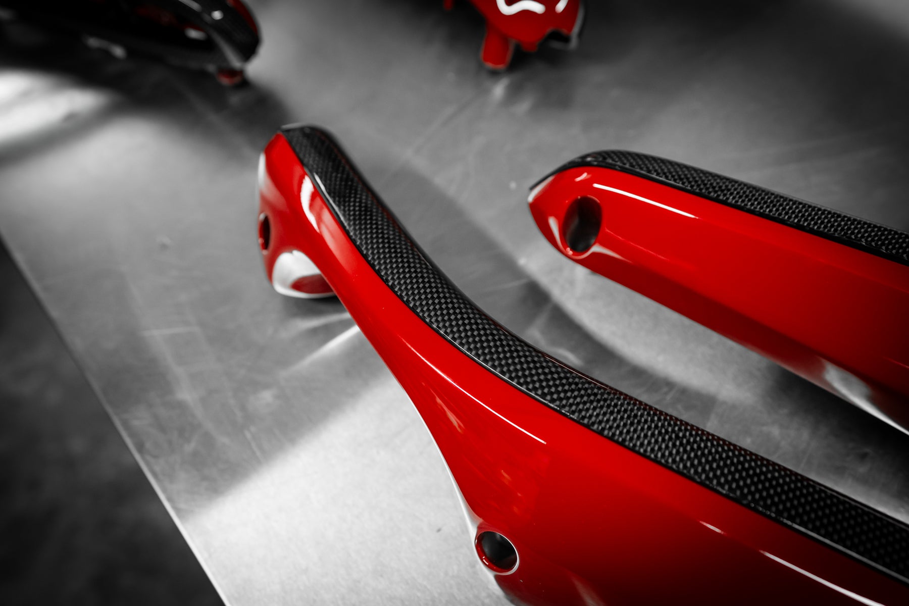 The roof, bumper, splitters and diffuser and the signature airbox were made in pre-preg carbon.