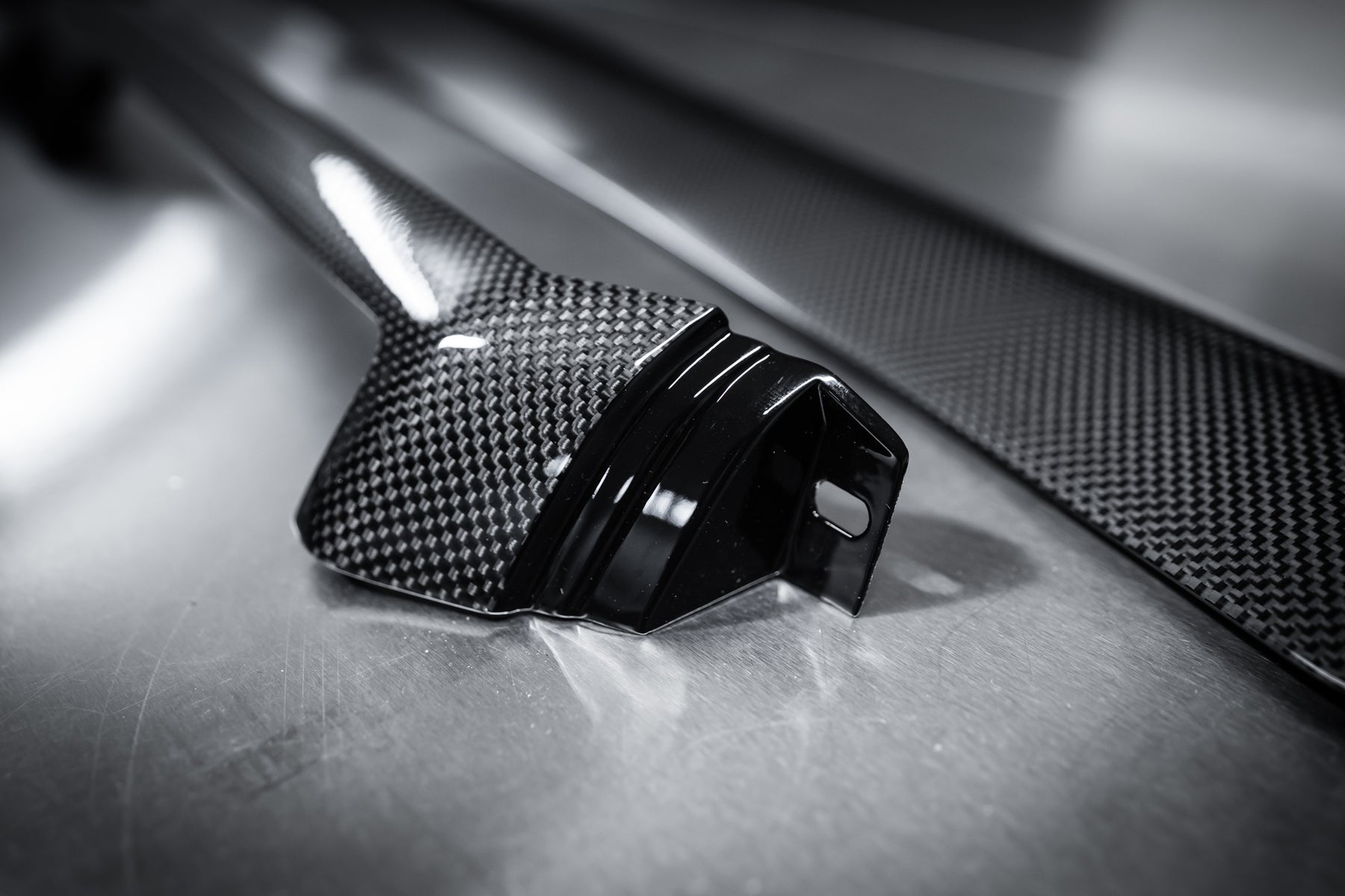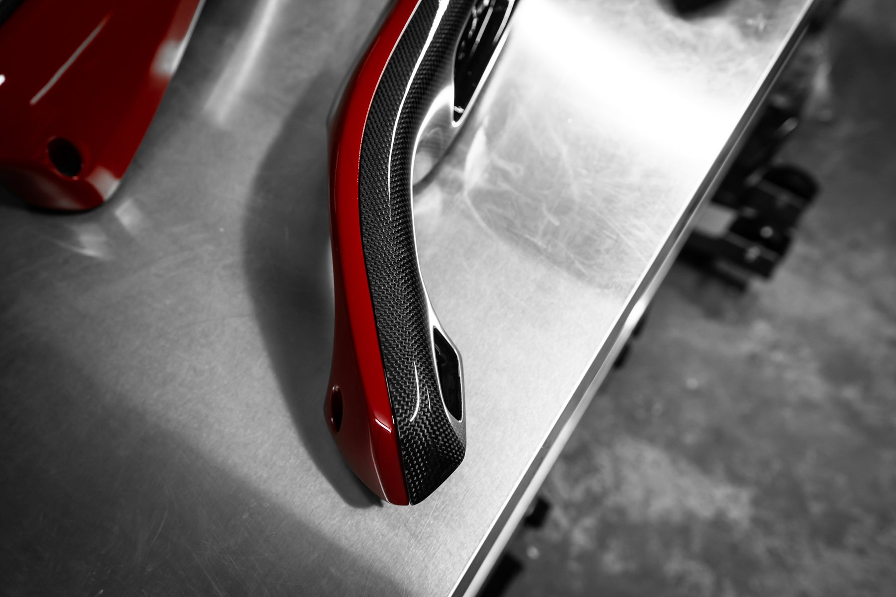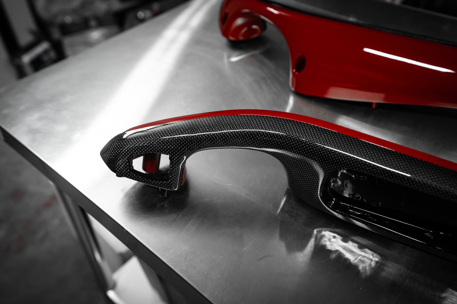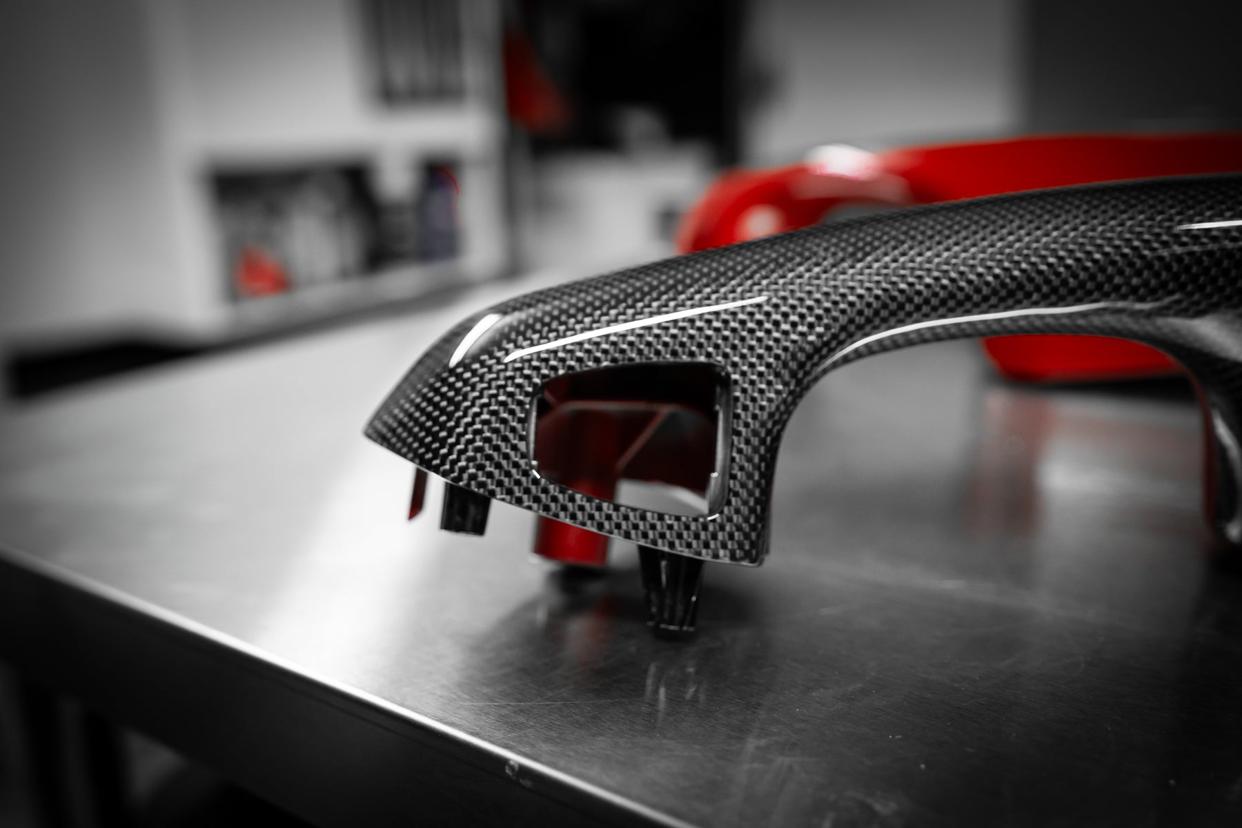 The roof, bumper, splitters and diffuser and the signature airbox were made in pre-preg carbon.