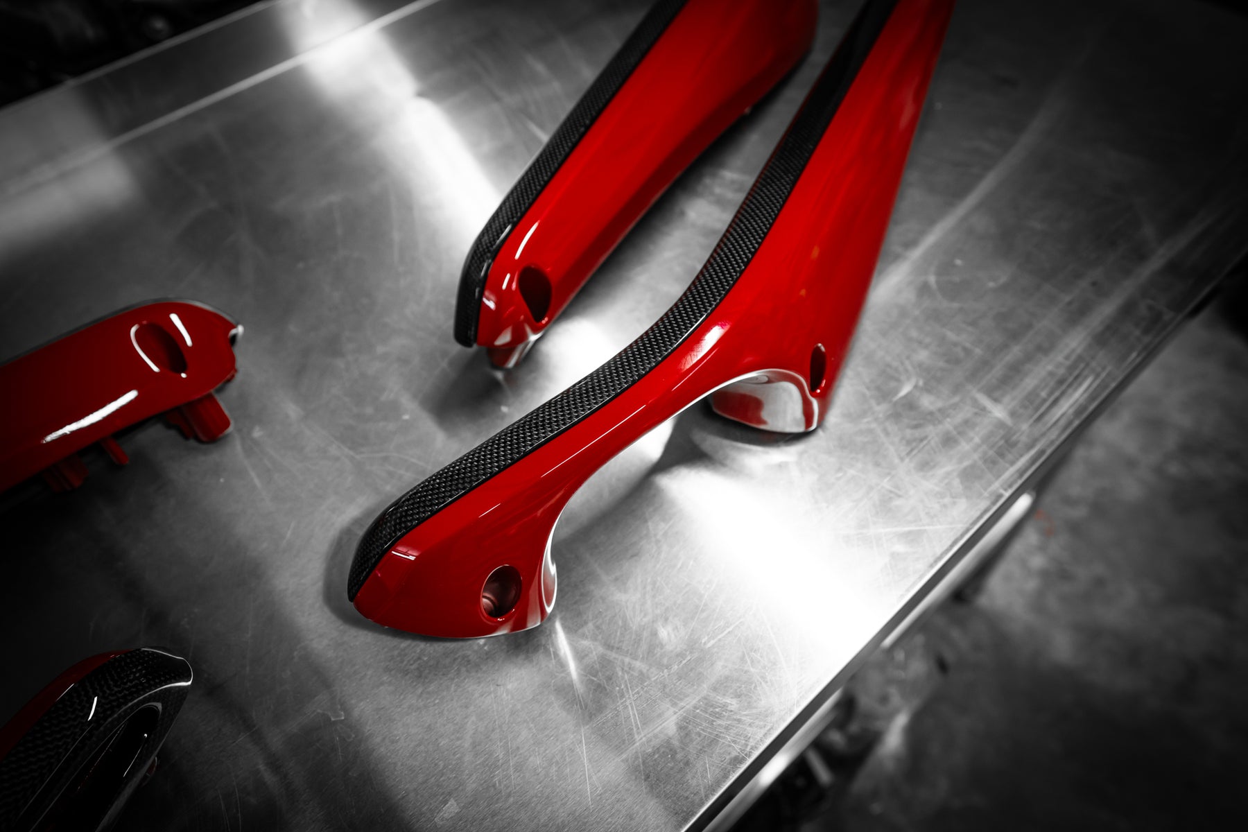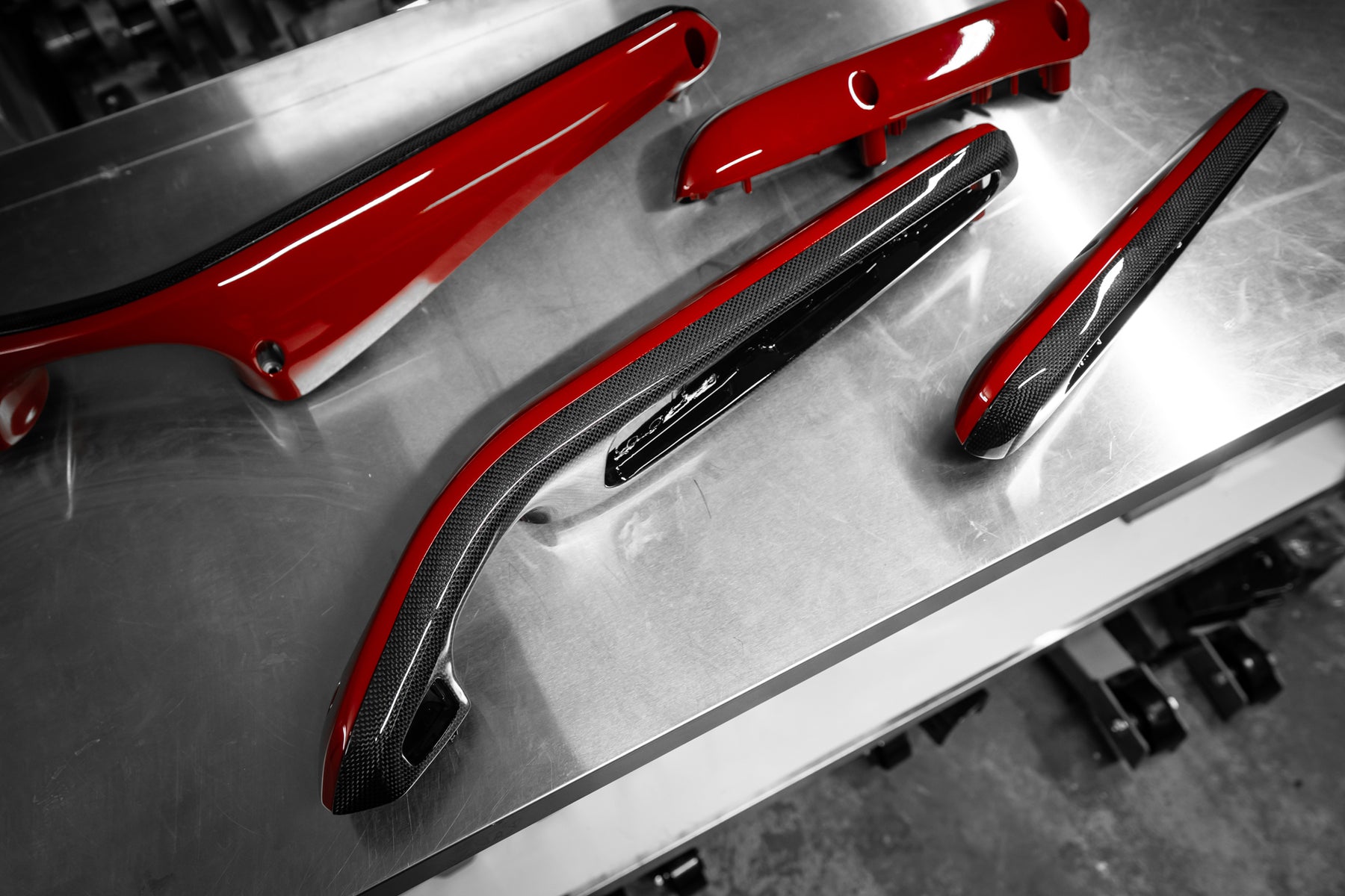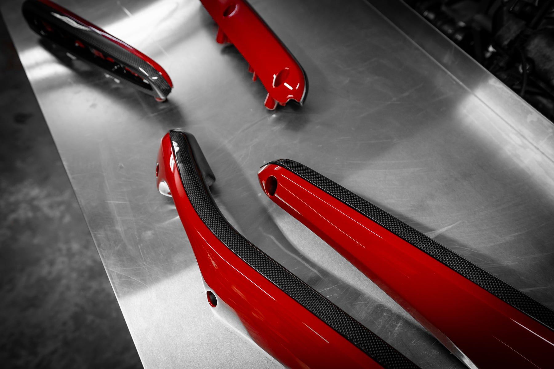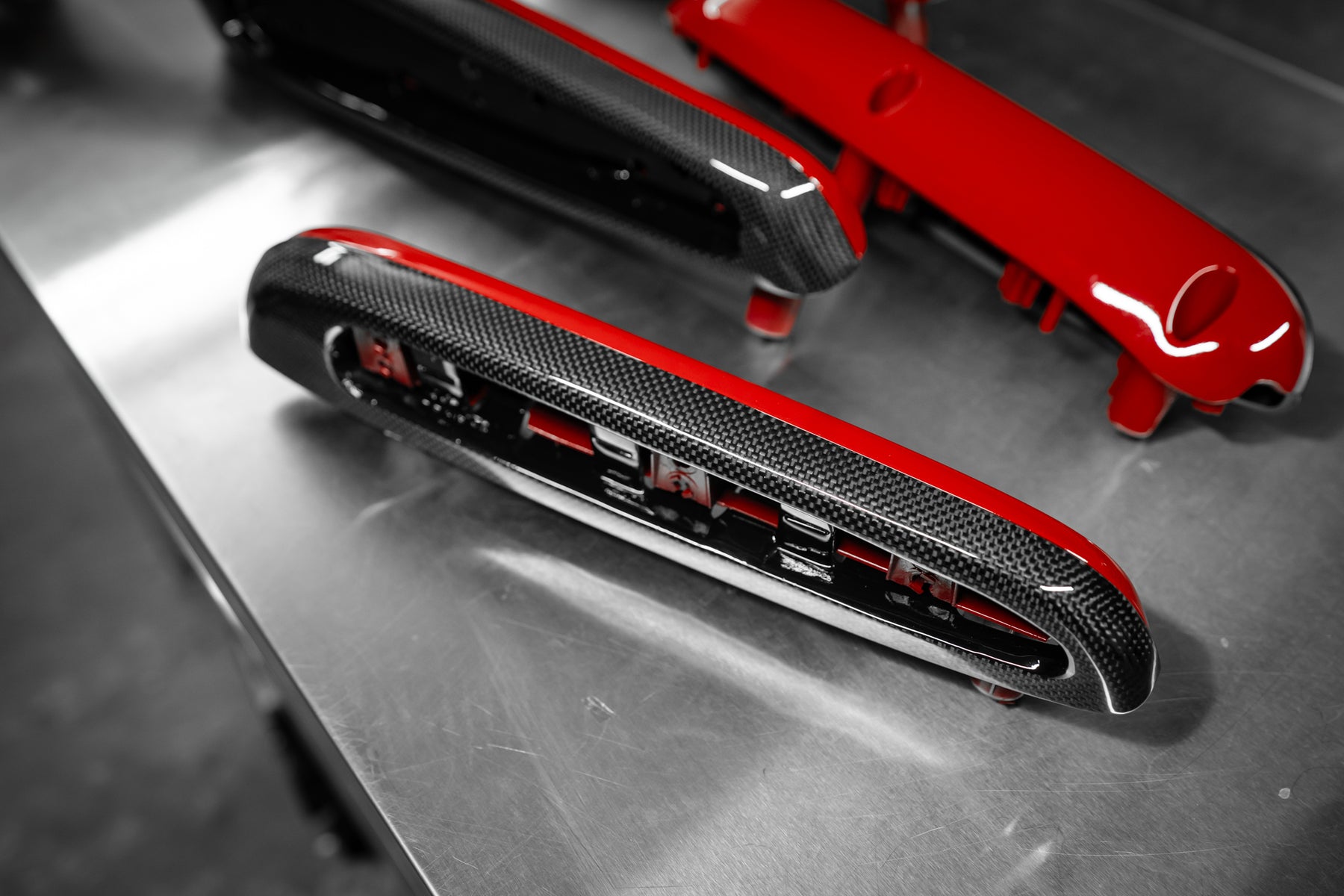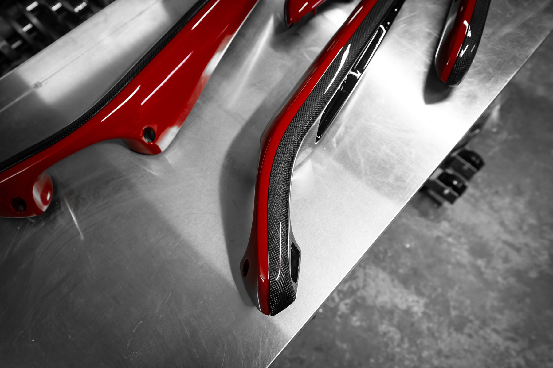 The roof, bumper, splitters and diffuser and the signature airbox were made in pre-preg carbon.