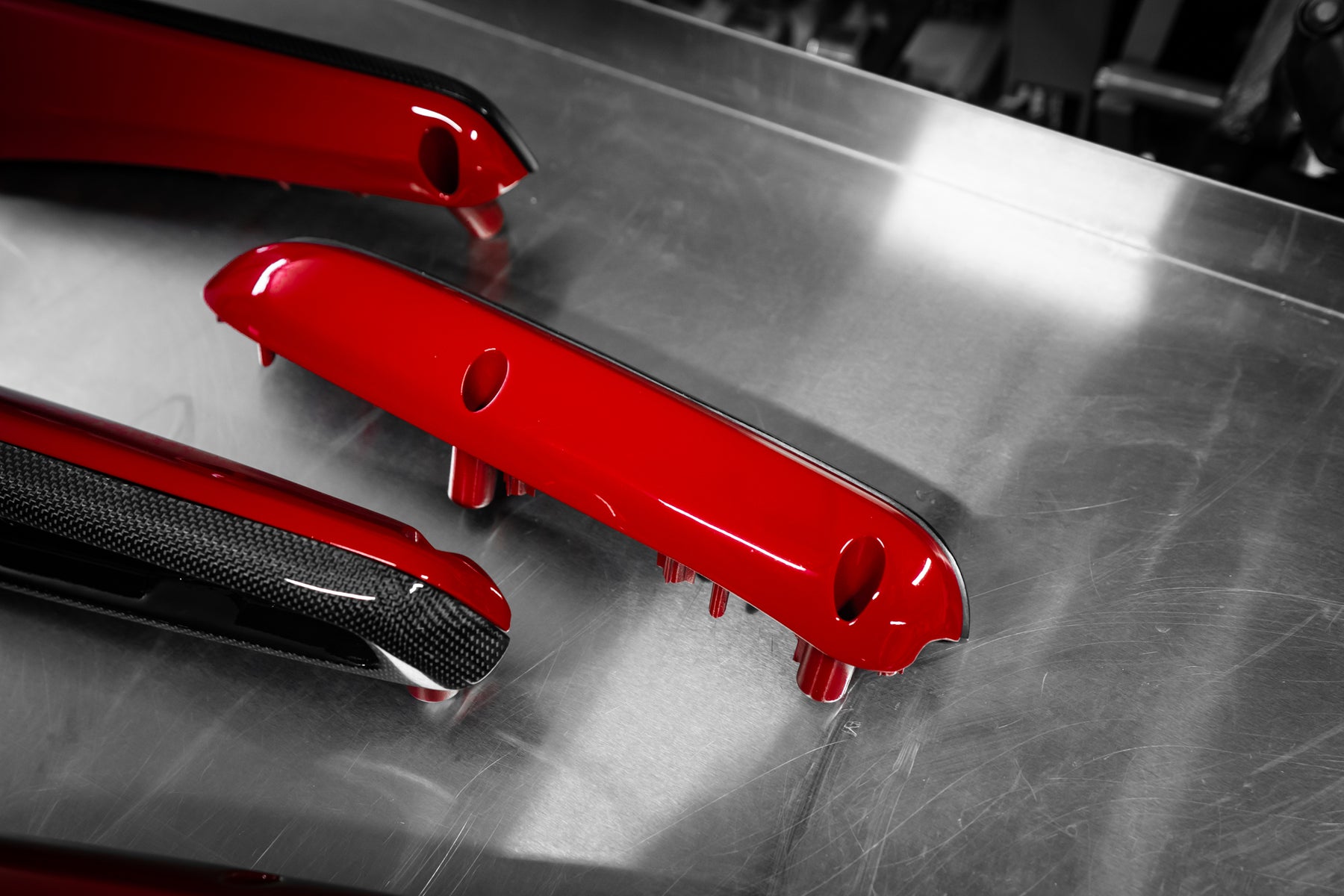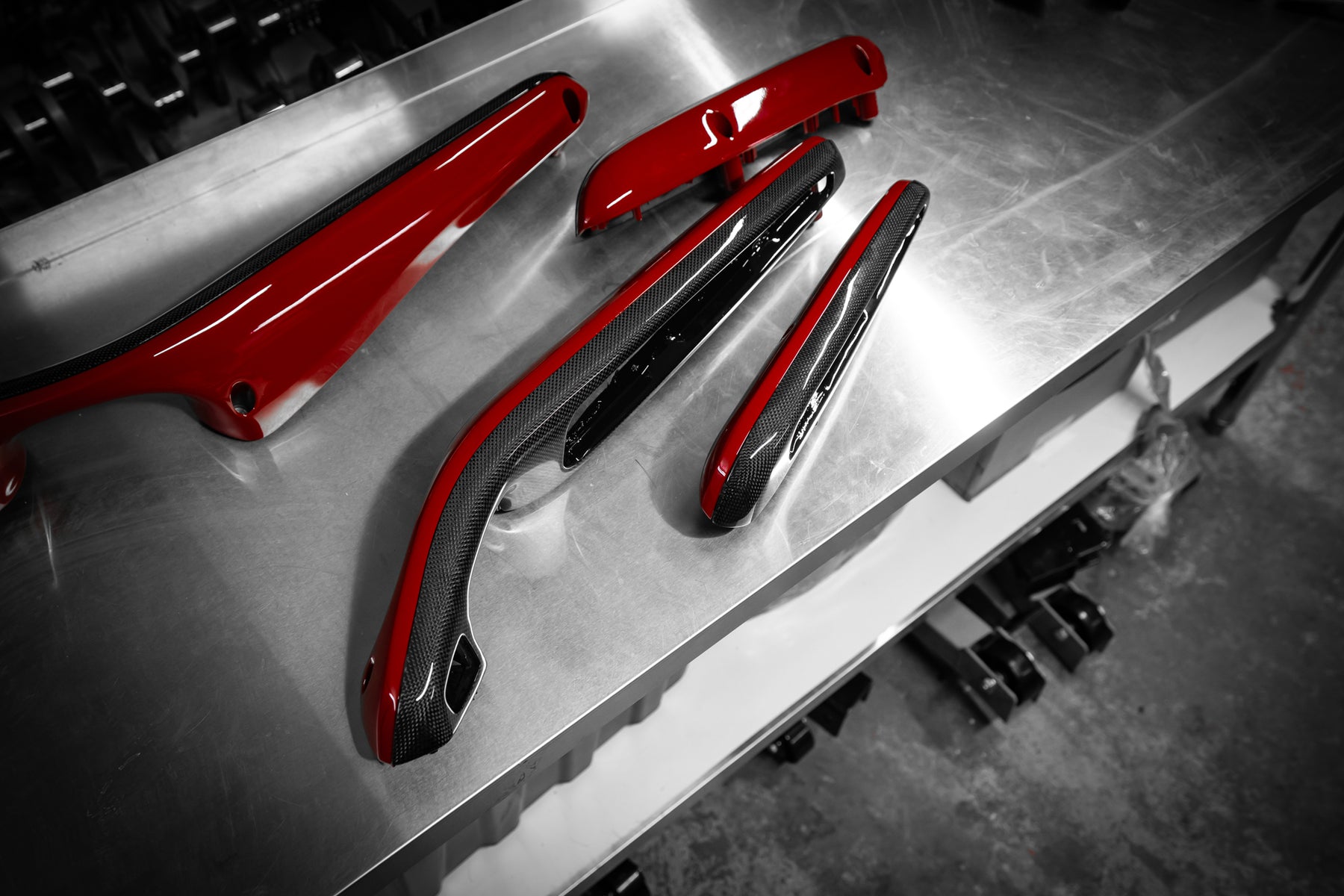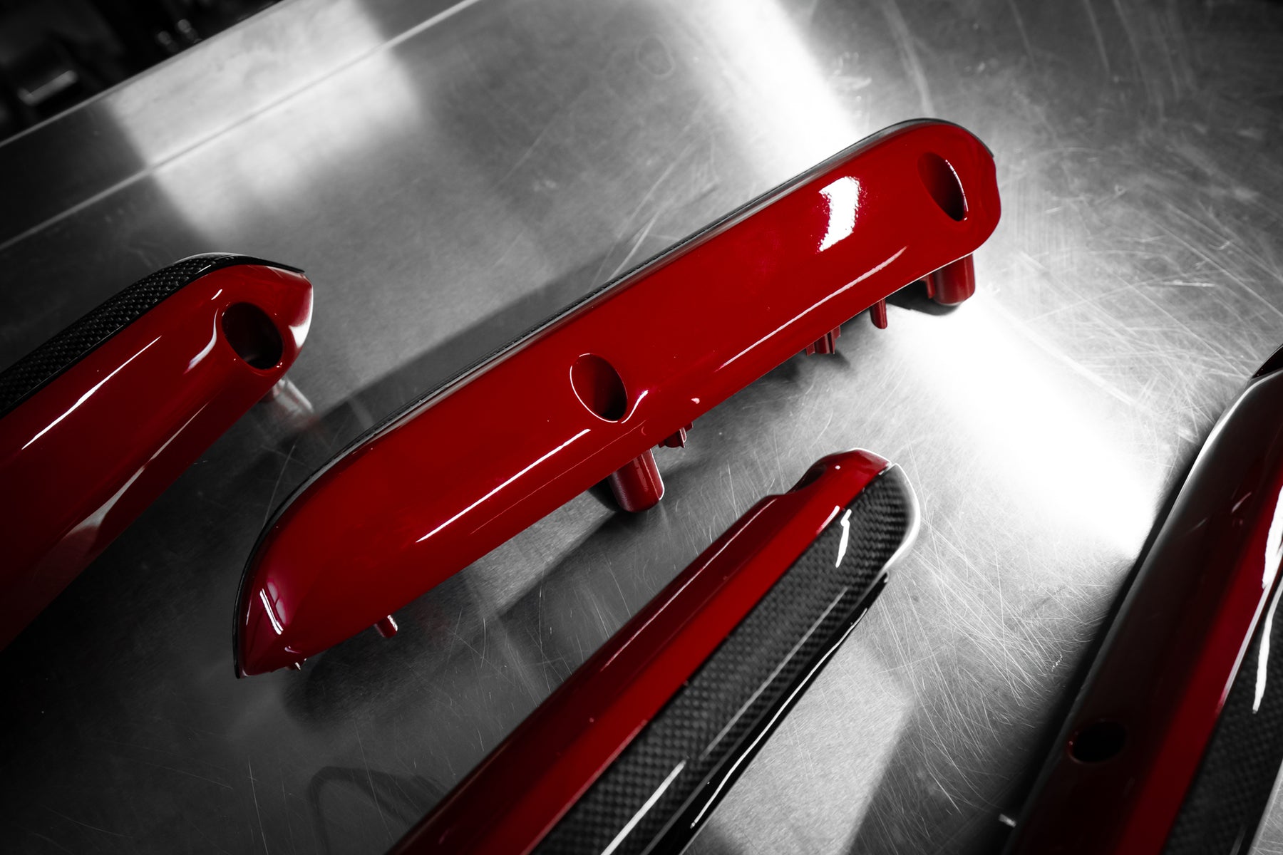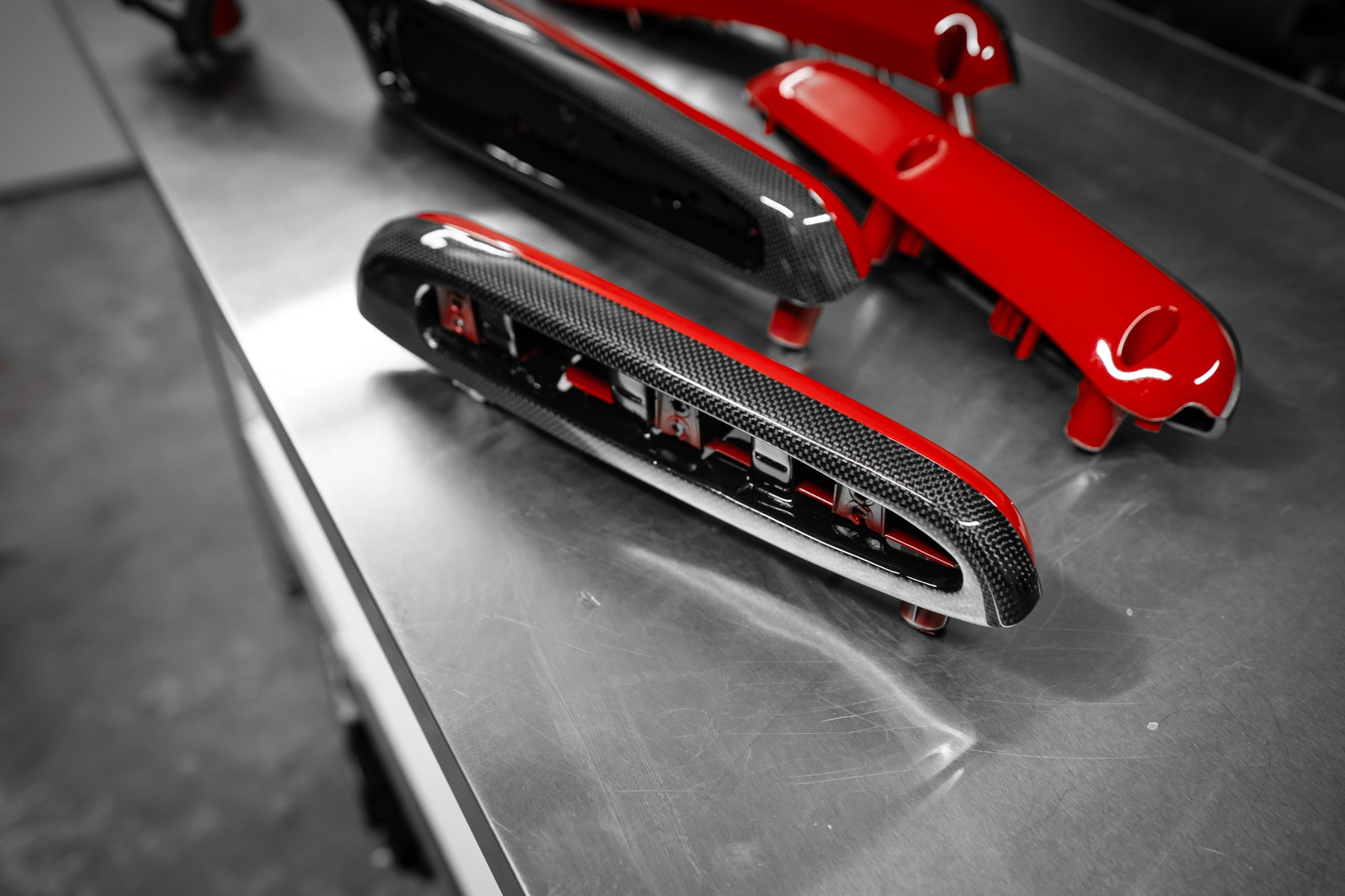 The roof, bumper, splitters and diffuser and the signature airbox were made in pre-preg carbon.