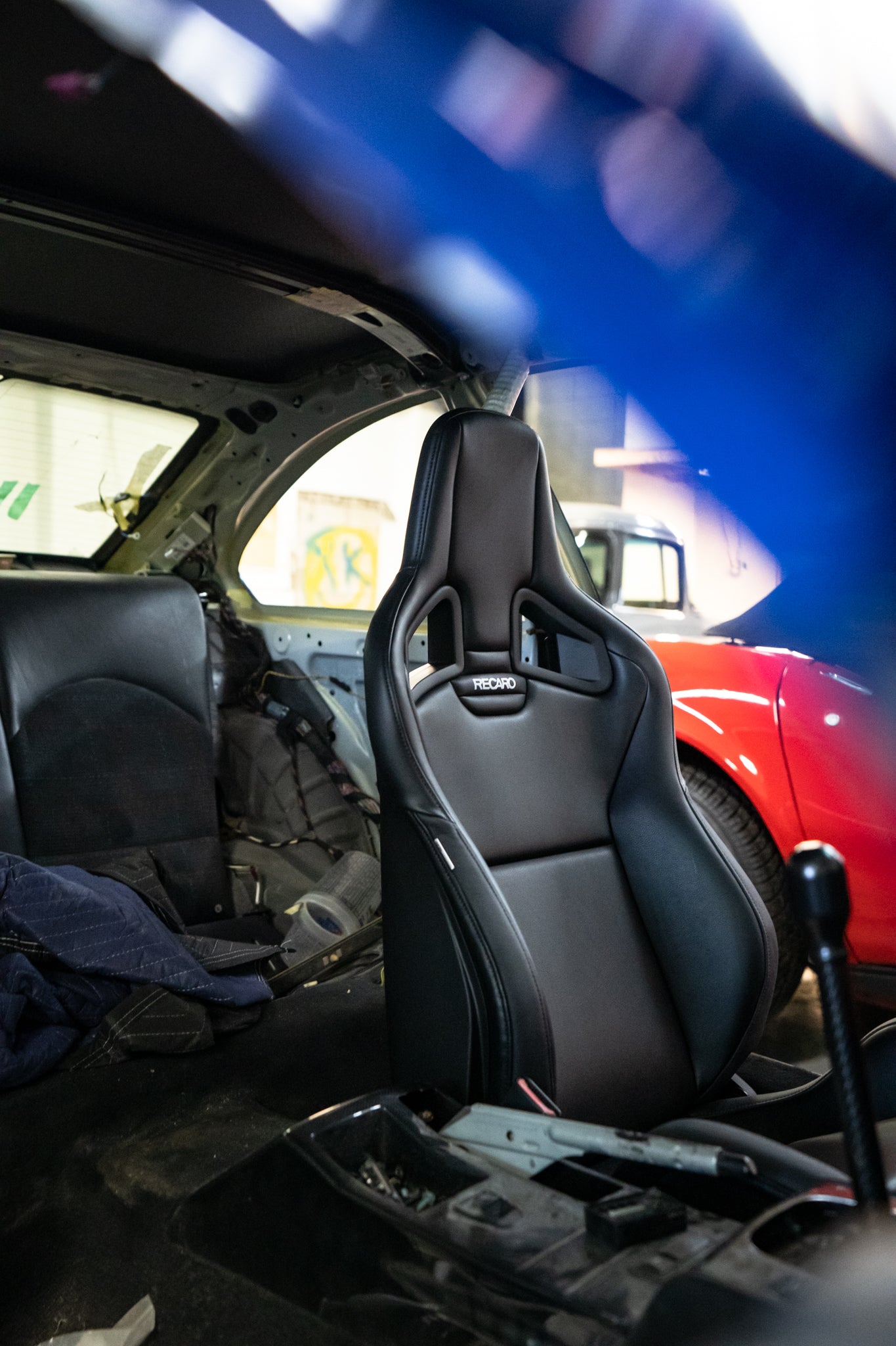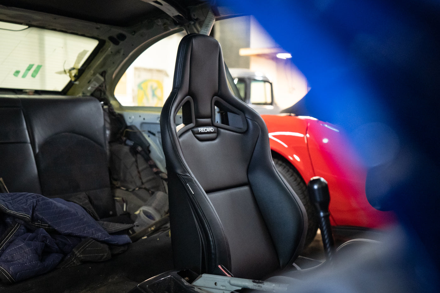 Spare Recaro hardware is provided for height adjustments along with bolt caps and wire covers.